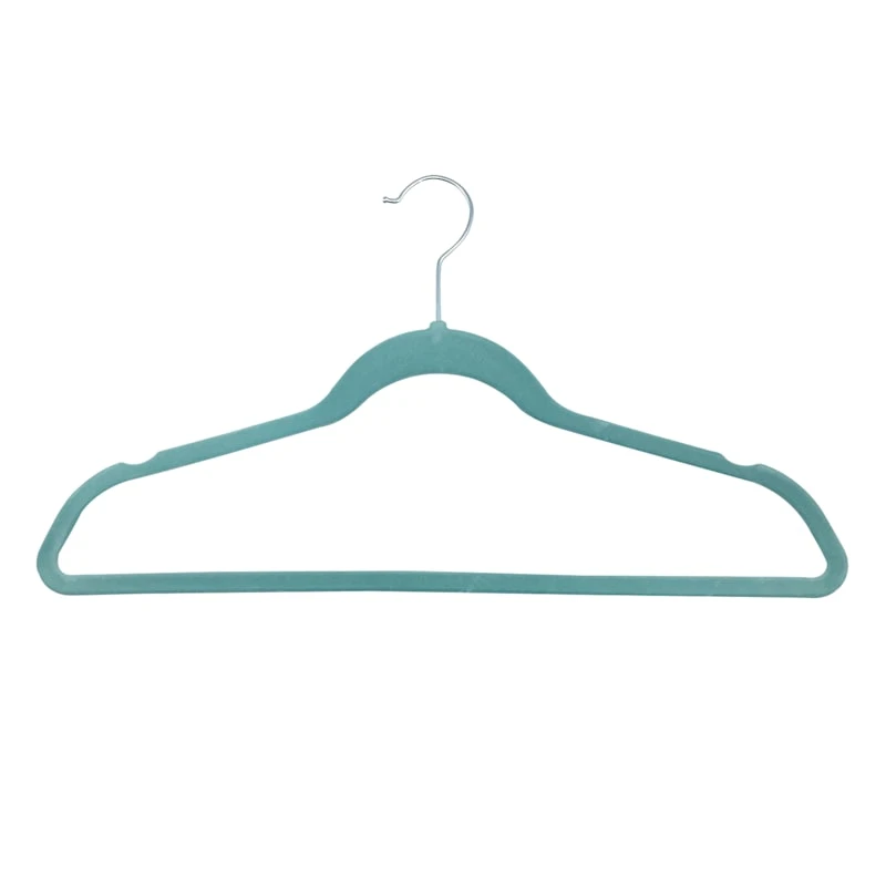Fear not, fabulous fashionistas! We have the perfect solution to your crowded closets. This aquifer green velvet hanger pack of 50 features non-slip flocking—so no more clothes sliding off the hangers and onto the floor! And the ultra-slim design means more space in your closet, too!