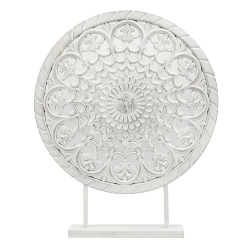 Found & Fable is a new collection that lets you explore what’s right around the corner. Choose your own adventure every day. Savor it all and say yes to what comes next—exclusively At Home. An artistic display to showcase your personality and enhance the look of any open tabletop. Display this round white medallion disc sculpture and stand against dramatic-colored walls to bring out its modern-minimalist inspired design. This item is for decorative use only. This sculpture makes a great gift for any occasion.