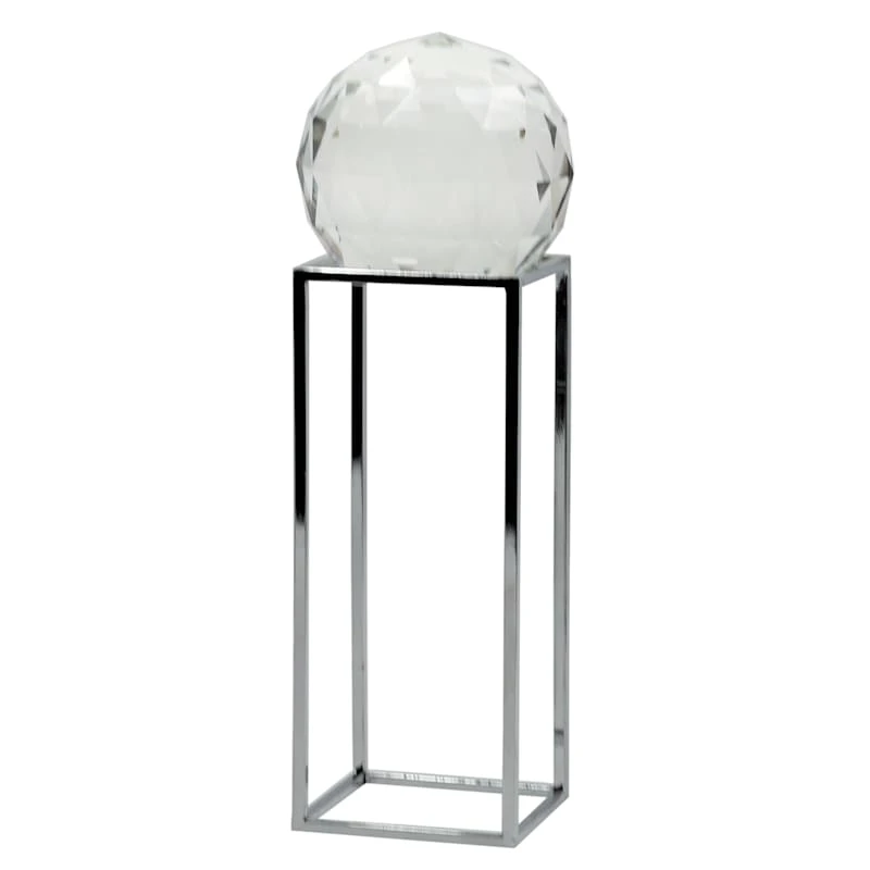 Laila Ali Crystal Ball With Chrome Box Metal Base, 11"