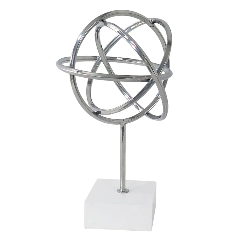 Laila Ali brings the mindset of a world-champion athlete and passion for healthy living to create a modern lifestyle collection with serious style only found At Home. Collect and gather the items you love and decorate the whole house with special whatnots and memorable tabletop decor. Make your home completely you with beautiful items like our 15in. round silver circle orb metal sculpture with white base from our Laila Ali Collection.