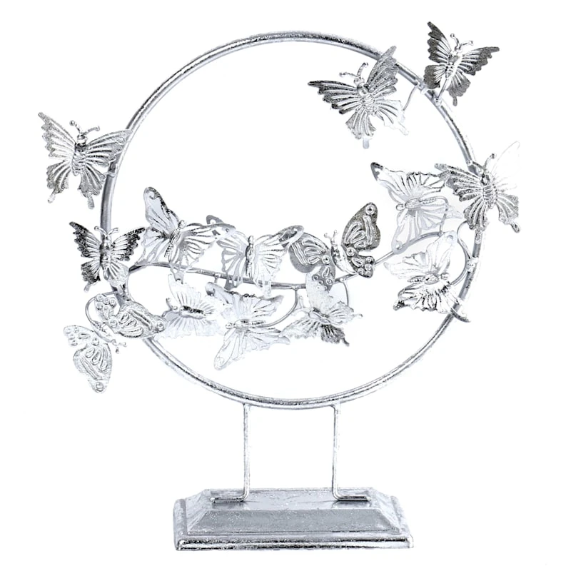 Laila Ali brings the mindset of a world-champion athlete and passion for healthy living to create a modern lifestyle collection with serious style found only At Home. Give your decor a unique touch with this 16in. silver metal butterfly table figurine. Decorative accessories are a great way to make a statement and a quick update. Place in a fun grouping or alone then sit back, relax and enjoy your eclectic vibe.