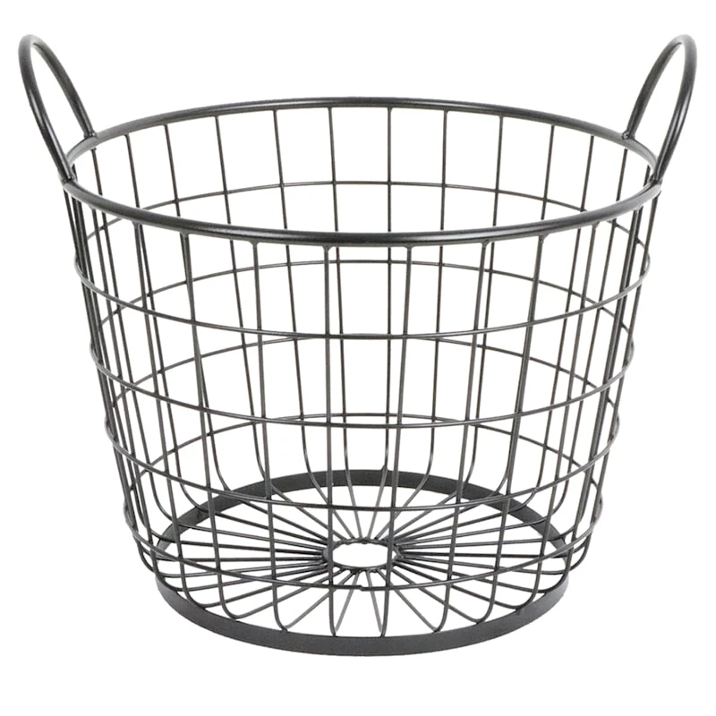 Metal Round Wire Grid Basket With Handle, Small