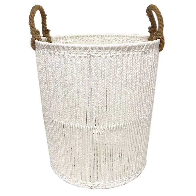 Round White Paper String Storage Basket, Large